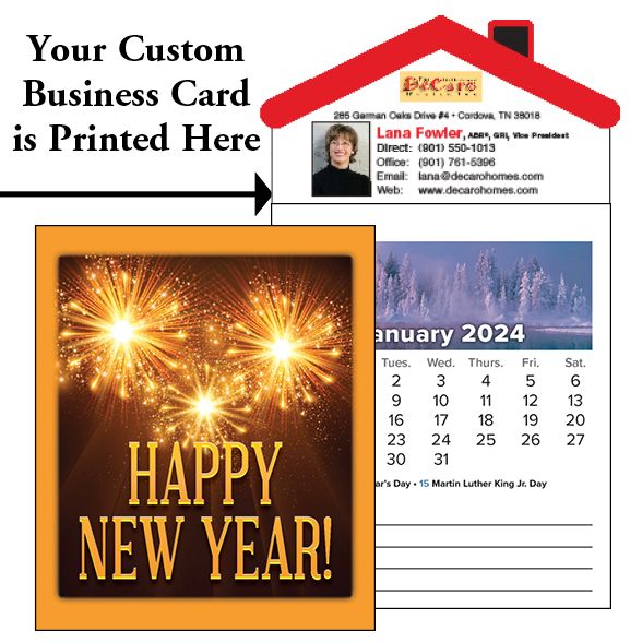 Each month features a seasonal image and an area for notes. YOUR CHOICE OF 10 COVERS. Comes with FREE Envelopes. 3½ x 6¼ calendars come with FREE “Gift for You Envelopes” and mail at the 1 oz. rate. Due to the heavy weight, a $3.00 per 100 surcharge will be added to our regular shipping.