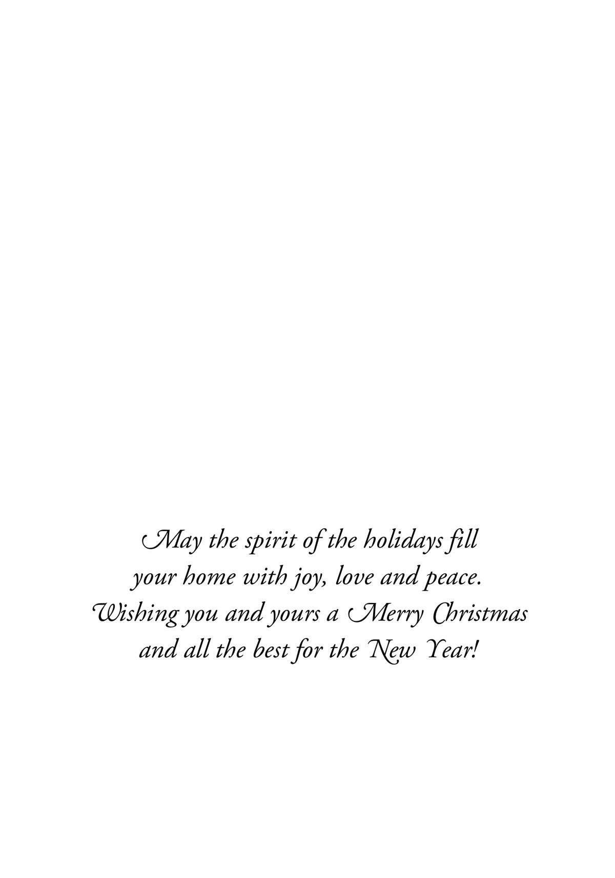May the spirit of the holidays fill your home with joy, love and peace. Wishing you and yours a Merry Christmas and all the best for the New Year! |